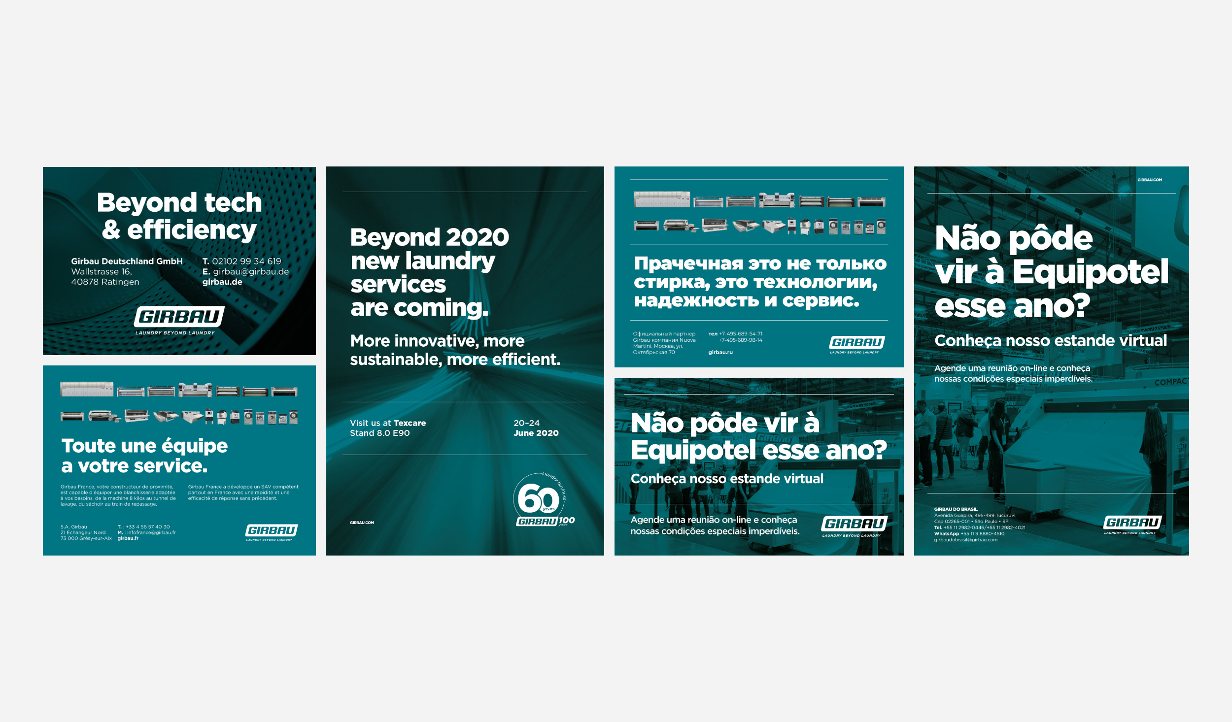 Al desarrollar la marca, uno de los retos principales fue crear un comportamiento gráfico coherente que unificara sus múltiples submarcas, programas y acciones. Tipografía, colores y reducciones se definieron pensando en que cada expresión de la marca conectara con las demás de manera clara y consistente. Presente en más de 100 países, Girbau necesitaba una narrativa y una expresión global que reflejaran su alcance y posición, de modo que, desde China hasta la costa oeste de Estados Unidos, la marca hablara un mismo idioma: Laundry beyond laundry.