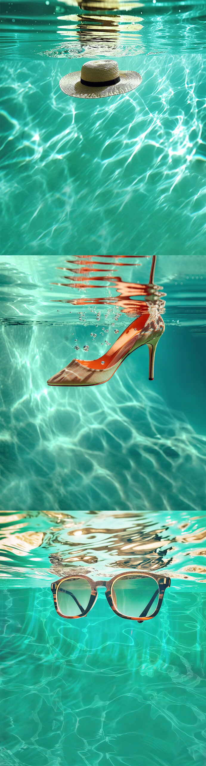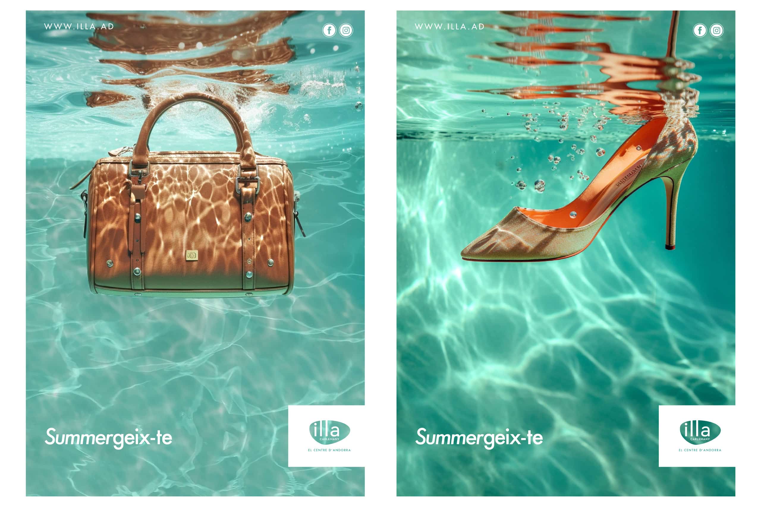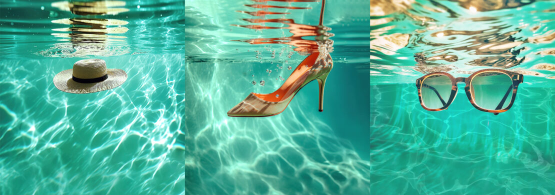 Summergeix-te (summérgete), con dos emes, de summer, es la campaña de verano. Primero fue la idea, la palabra, después la imagen en la cabeza: elementos de moda sumergidos en una piscina. Tachán!