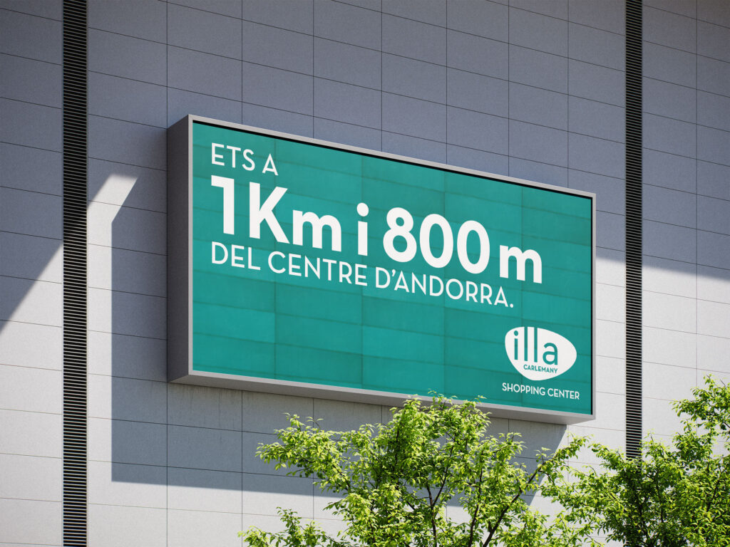 El trabajo para illa Carlemany comenzó con un encargo sencillo: unas vallas exteriores en las carreteras que conectan con Andorra. Aunque tradicionalmente el país es un destino de compras, en ese momento ningún centro comercial destacaba como referente. Las piezas no solo captaron atención, sino que ayudaron a orientar la estrategia de marca, convirtiéndose de manera natural en el nuevo posicionamiento de illa Carlemany. Lo que empezó como un proyecto puntual terminó marcando el rumbo estratégico de la marca y sentando las bases de todo lo que vino después.