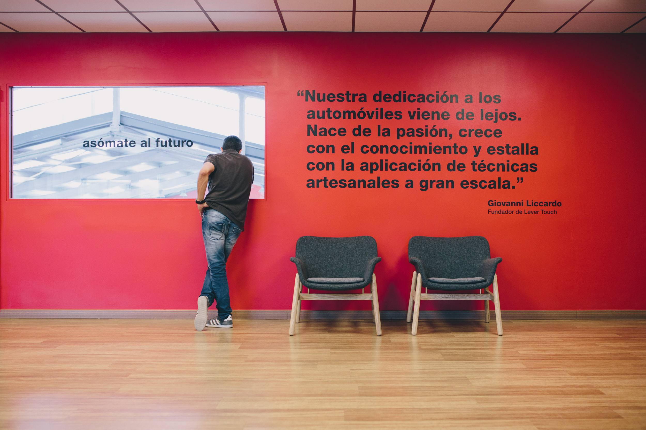 El espacio físico funciona como un escenario propio, con sus propias reglas de comunicación, diferentes a las del mundo offline o digital. Lever Touch dispone de instalaciones de más de 10.000 m² dedicadas a reparaciones para clientes locales, desde aseguradoras hasta empresas con flotas de vehículos.