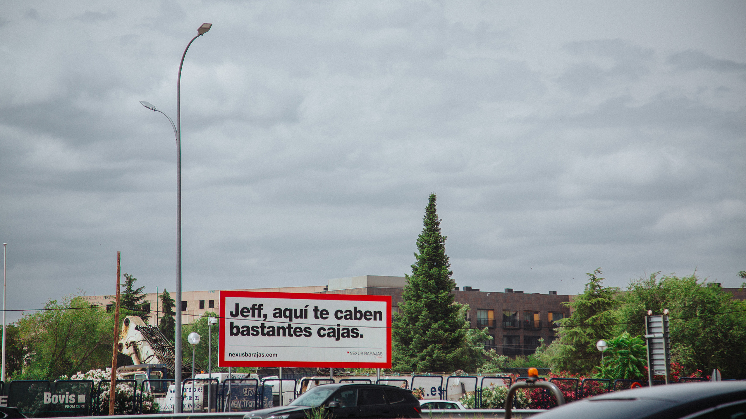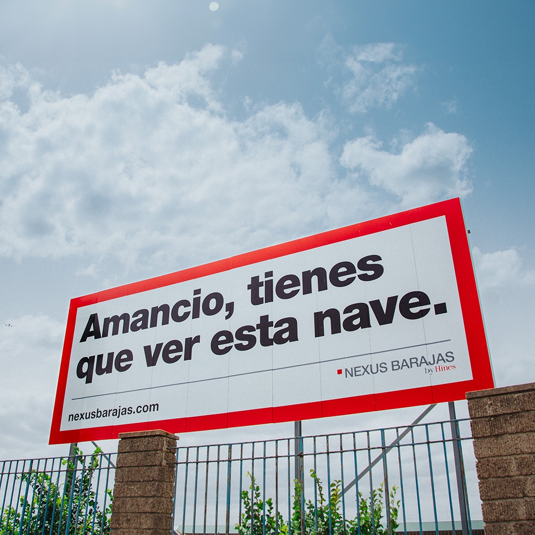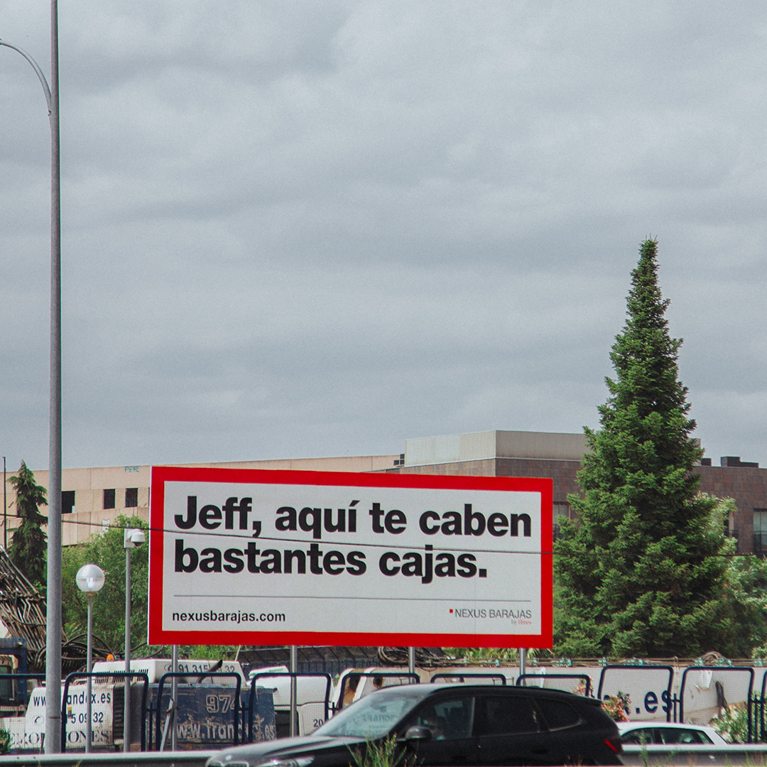Para la comunicación exterior se desarrollaron vallas OOH de 10 metros, pensadas para ser vistas a toda velocidad desde la carretera. Mensajes claros, tipografía grande y fondos limpios permiten que cualquiera que pase por delante entienda de inmediato que se trata de un espacio de gran escala disponible para empresas logísticas. Algunos titulares incluyen referencias a personajes icónicos conocidos por sus redes de distribución mundial, reforzando la dimensión del proyecto con pocas palabras.