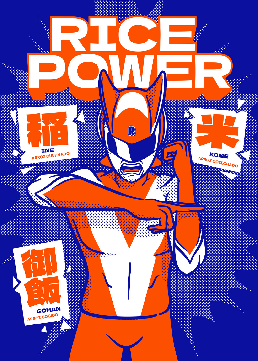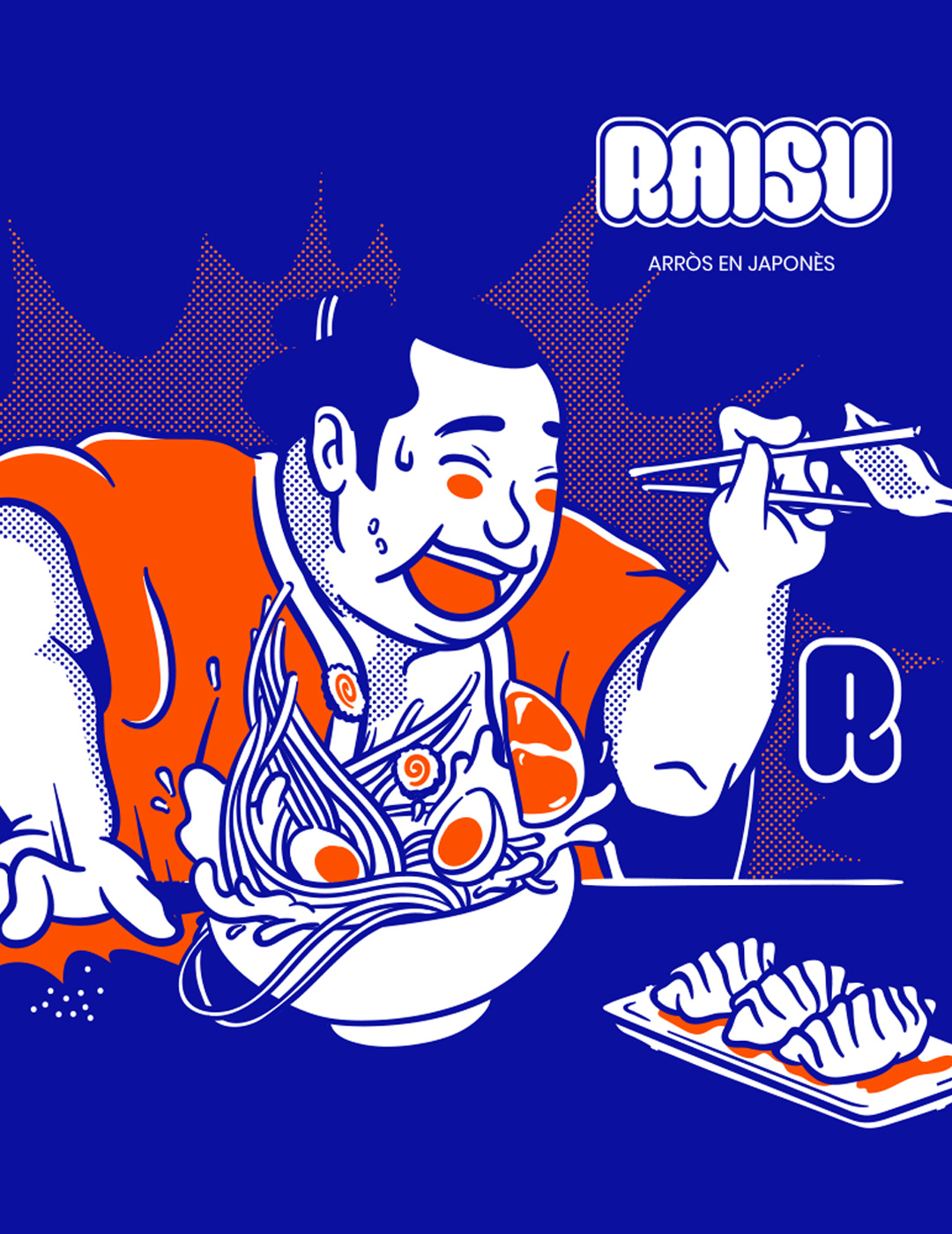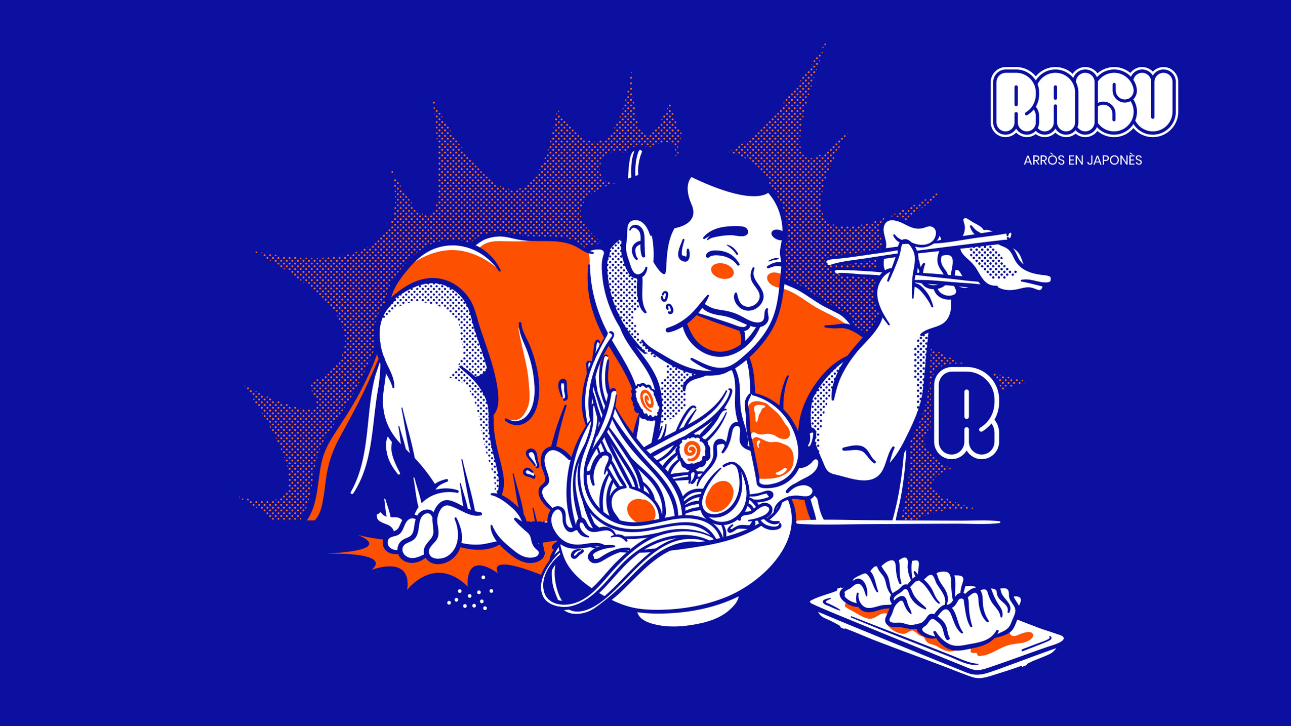 Raisu toma su nombre de la pronunciación japonesa de “arroz”: sencillo, fácil de recordar y con un guiño al origen asiático. La identidad se construyó con ilustraciones dinámicas y llamativas, un azul eléctrico que aporta energía, tipografía con volumen y un tono divertido que atraviesa todo el lenguaje visual.